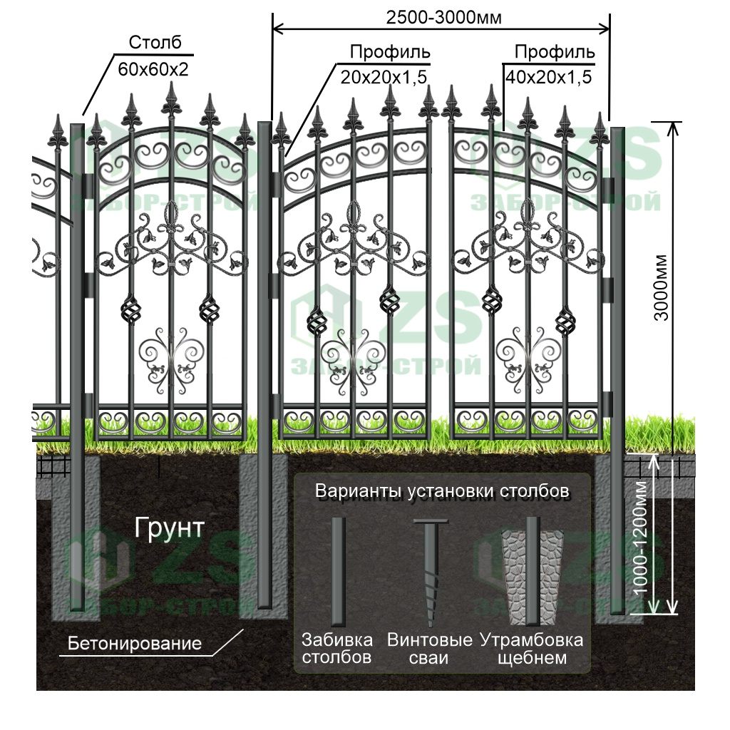 Конструкция и способы установки кованых заборов: